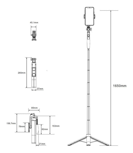 Aisens Palo Tripode Para Selfie Con Mando A Distancia Bluetooth 3 En 1, Negro