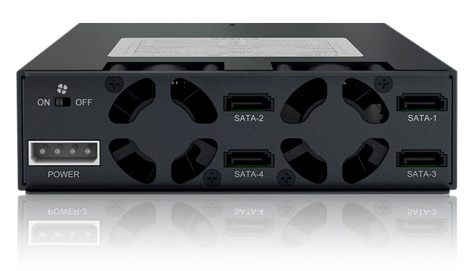 Icy Dock MB994SP-4SB-1. Tamaño (imperial): 13,3 cm (5.25"), Tipo: Panel de instalación, Color del producto: Negro. Ancho: 146 mm, Profundidad: 170 mm, Altura: 41,3 mm. Peso del paquete: 865 g