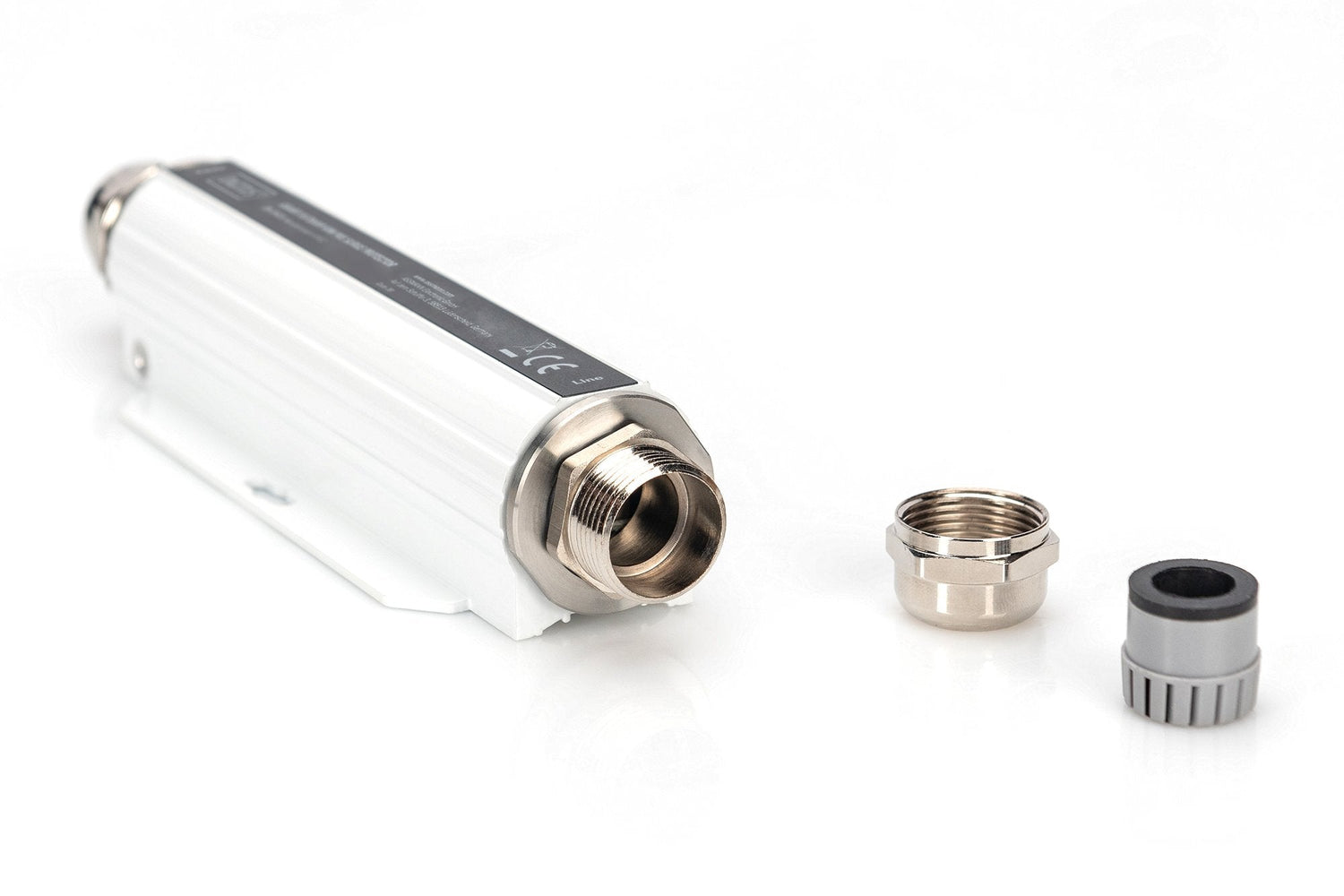 Digitus DN-95424 es una protección contra sobretensiones de PoE con una conexión RJ45, desarrollada para aplicaciones en el exterior con una carcasa de aleación de aluminio según IP 67.