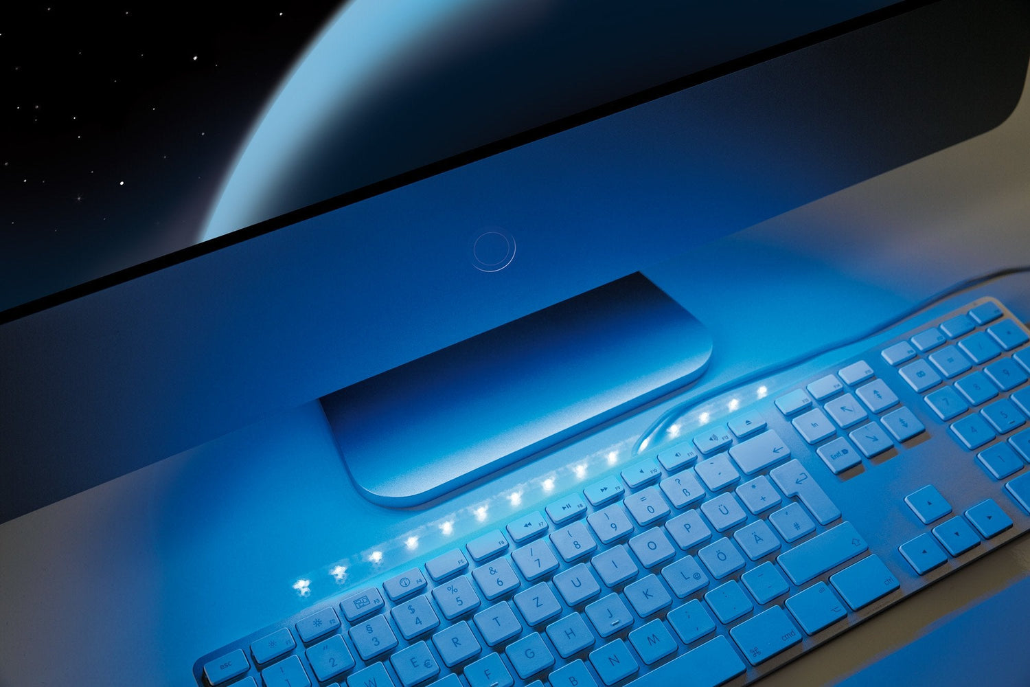 Paulmann 704.56. Tipo: Regleta luminosa universal, Colocación soportada: Interior, Tipo de montaje: Cinta adhesiva. Color de luz: Azul, Tipo de bombilla: LED, Potencia de bombilla: 1,5 W. Longitud: 3000 mm, Ancho: 5 mm, Grosor: 3 mm