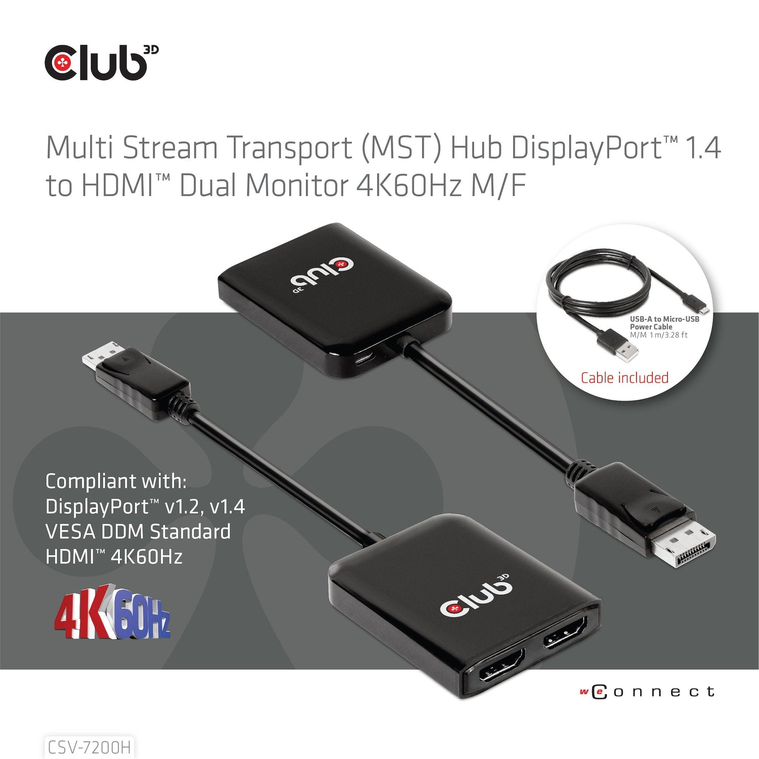 Club3d Hub Mst Displayport 1.4 -> 2xhdmi Dual Monitor 4k60hz (M / H)