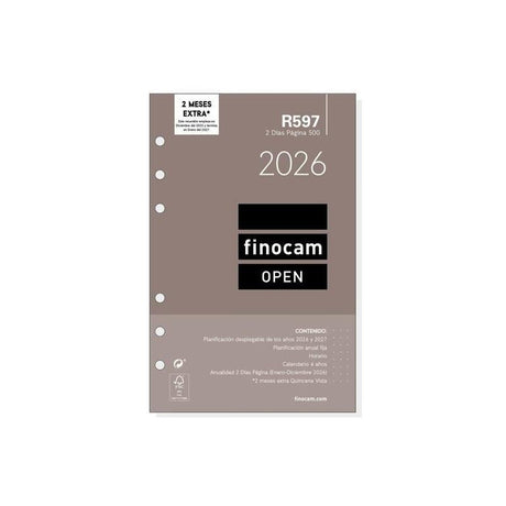 Finocam Recambio Anual Agenda De Anillas Open R597 500-117x181mm 2dp 2026