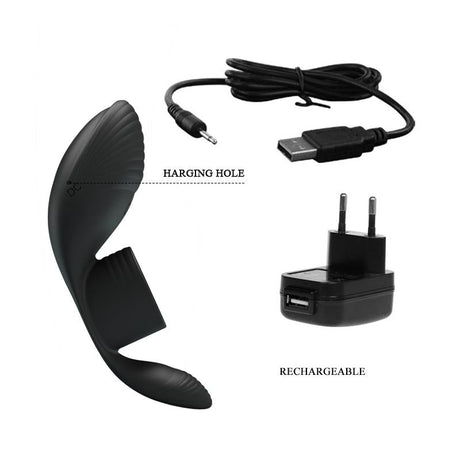 Pretty Love - Doble Anillo Vibrador + Estimulador Clítoris 10 Vibraciones Negro