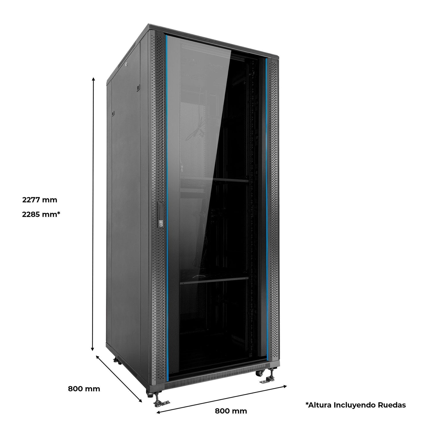 - Armario rack de suelo con ancho estándar de 19” (482,6 mm).