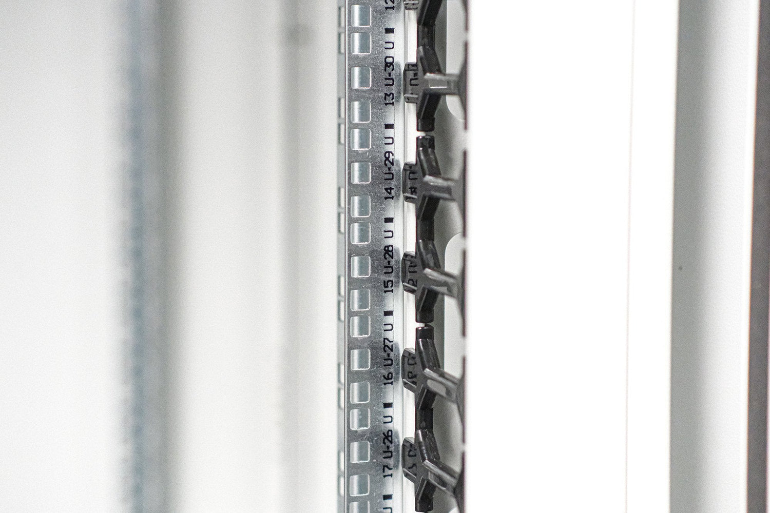- Las guías de perfil de 483 mm (19”) pueden regularse en profundidad y están dotadas de una marca que indica la unidad de altura