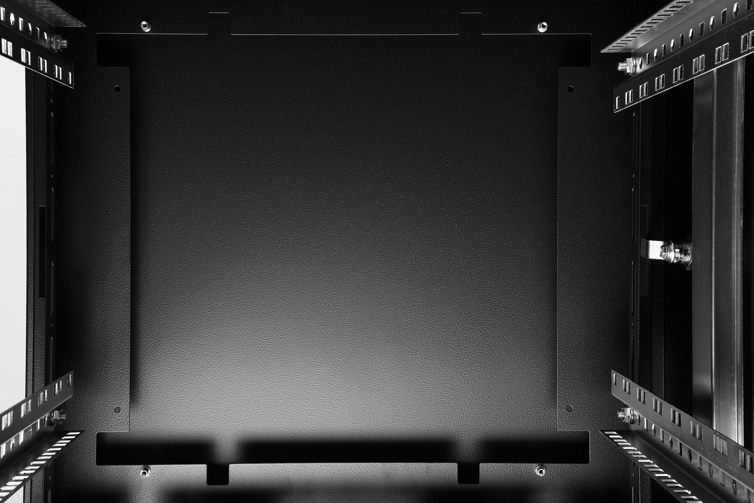 Los armarios de red de la serie Unique se han diseñado y fabricado para un cableado de red especialmente cómodo y flexible. Las sofisticadas optimizaciones ofrecen una estabilidad acorde con el mercado con la máxima flexibilidad. Un chasis base modular, que puede abrirse mediante paneles ciegos atornillados de 483 mm (19"), ofrece espacio suficiente para cables de todo tipo. También hay entradas de cables con cepillos en la parte trasera del chasis base. Las bandas de escobillas traseras situadas encima y debajo de la puerta trasera (a partir de 26U) permiten su uso en una amplia gama de escenarios de aplicación. Los amplios conductos de cables verticales con ayudas para el guiado de cables y tapa, instalados en la parte delantera (a partir de 800 mm de ancho de armario), completan a la perfección las versátiles características del armario de red. En el interior hay instalados dos pares de carriles de perfil de 483 mm (19") galvanizados y con manivela, etiquetados con unidades de altura que pueden leerse en direcciones opuestas. Se pueden ajustar de forma continua y están conectados a puntales de profundidad adicionales en el armario. Cada armario es una robusta construcción de chapa de acero de hasta 1,5 mm de grosor. La coloración se realiza mediante recubrimiento electrostático en polvo en los colores estándar gris (RAL 7035) y negro (RAL 9005). Los paneles laterales y las puertas modulares bloqueables y desmontables mejoran la accesibilidad. Las bisagras de las puertas se pueden cambiar. Además, los armarios pueden desmontarse completamente en caso necesario gracias a su diseño desmontable.