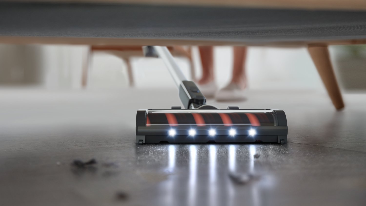 El cepillo con luz LED para suelos duros revela el polvo y guía el movimiento