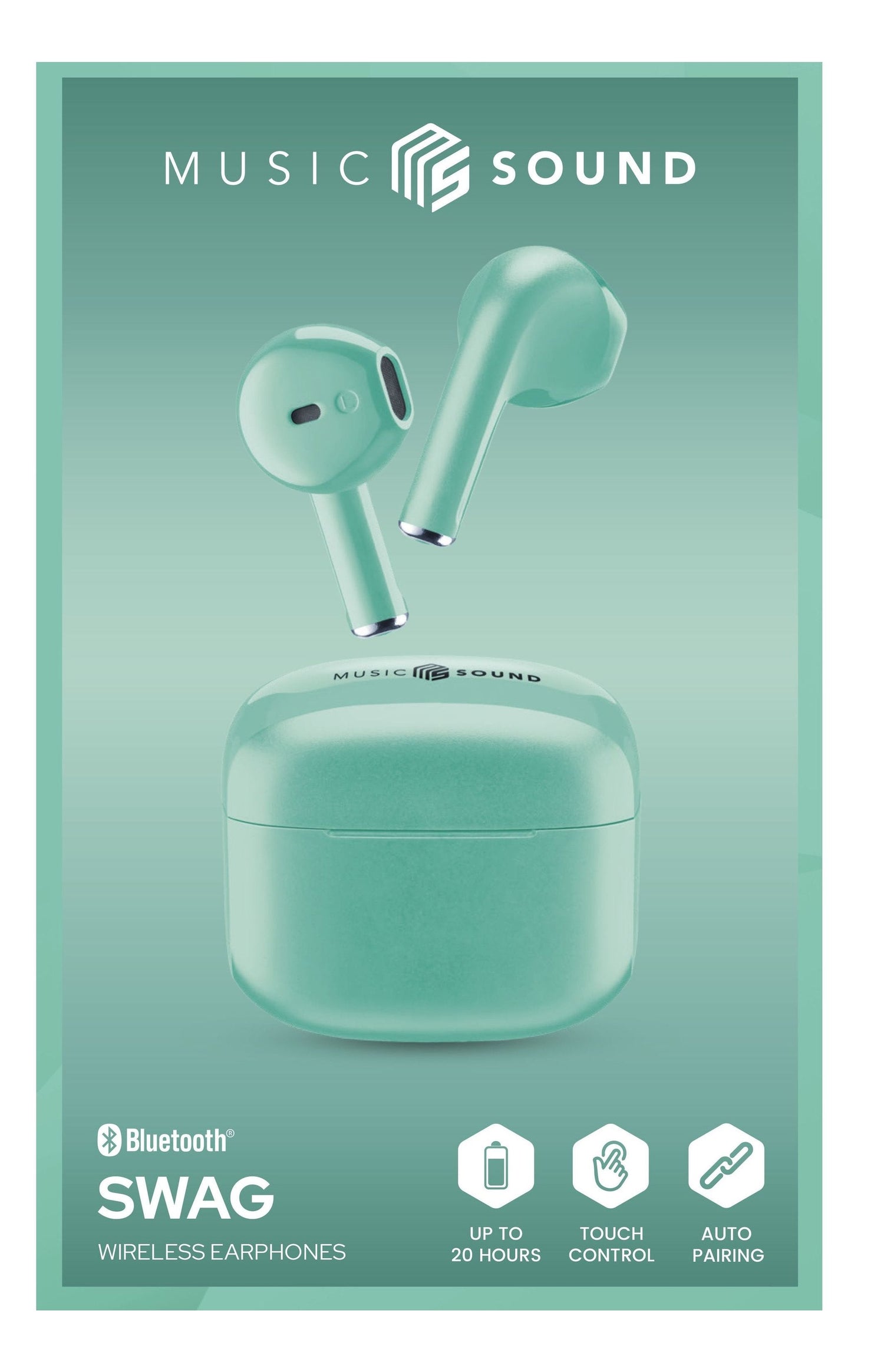 Music Sound Swag SWAG est l’écouteur à capsule Bluetooth disponible dans de très nombreuses couleurs super tendance.. Tipo de producto: Auriculares. Tecnología de conectividad: Inalámbrico, Bluetooth. Uso recomendado: Llamadas/Música, Longitud de cable: 0,15 m. Peso: 66 g. Color del producto: Verde