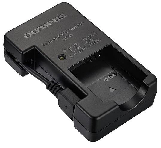 Olympus UC-92. Adecuado para: Batería para cámara digital, Tecnología de baterías compatibles: Ión de litio, Marca compatible: Olympus. Color del producto: Negro. Corriente de salida: 0,8 A, Tiempo de recarga de la batería: 2,5 h. Cantidad por paquete: 1 pieza(s)