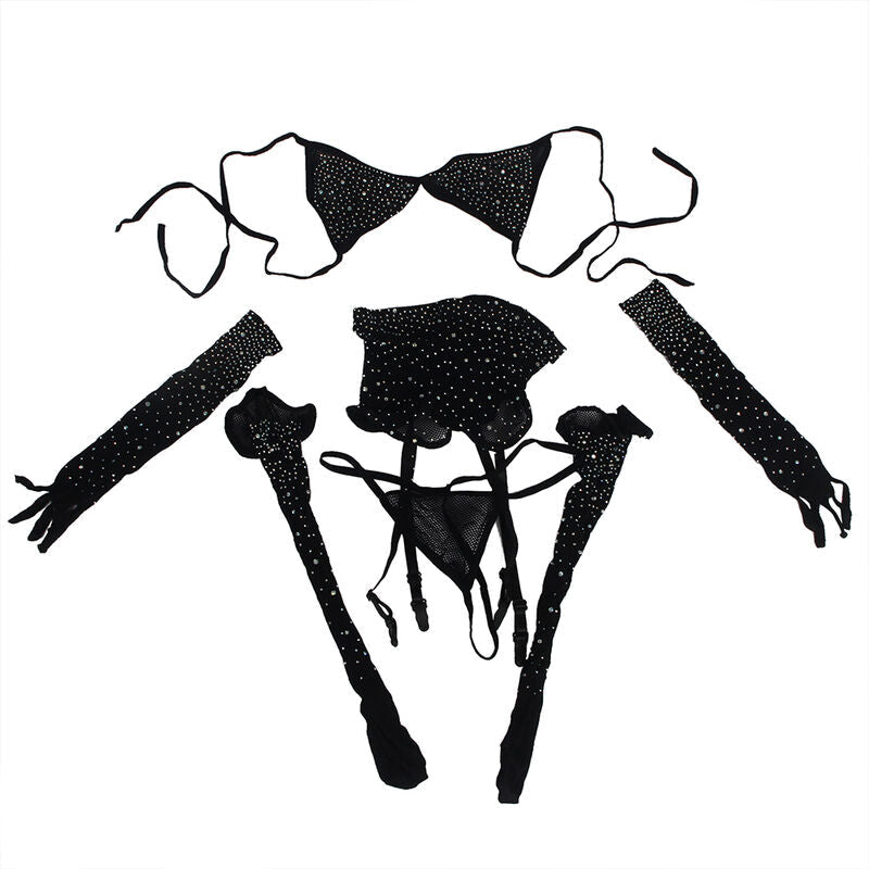 Subblime - 952174 Bodystocking De Rejilla Con Guantes Y Diamantes Negro Talla Única