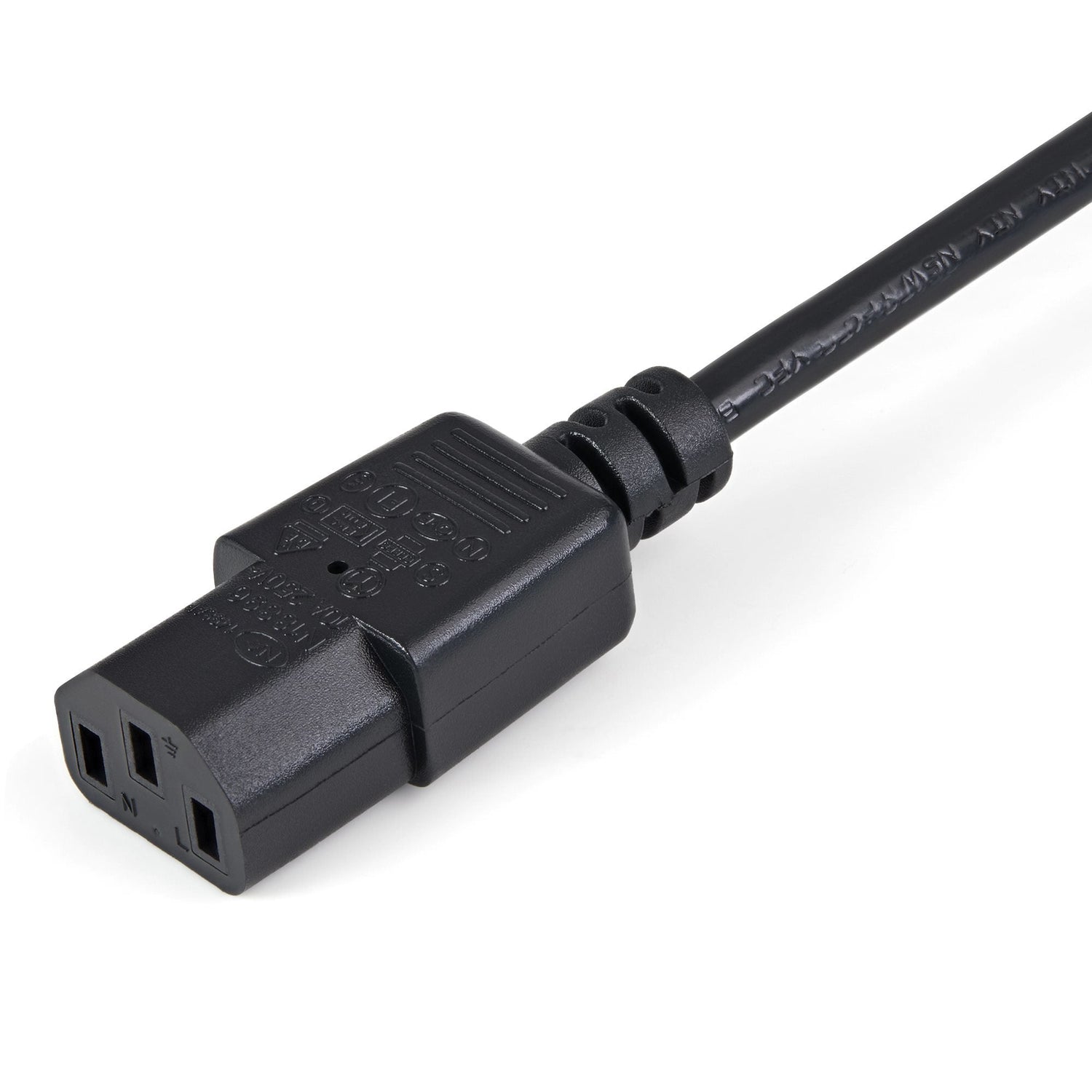 - CABLE DE ALIMENTACIÓN DE CA: Este cable alargador de alimentación de 1m de 18AWG con conectores IEC 60320 C14 y IEC 60320 C13 es adecuado para el uso en estaciones de trabajo / 125V a 10A
