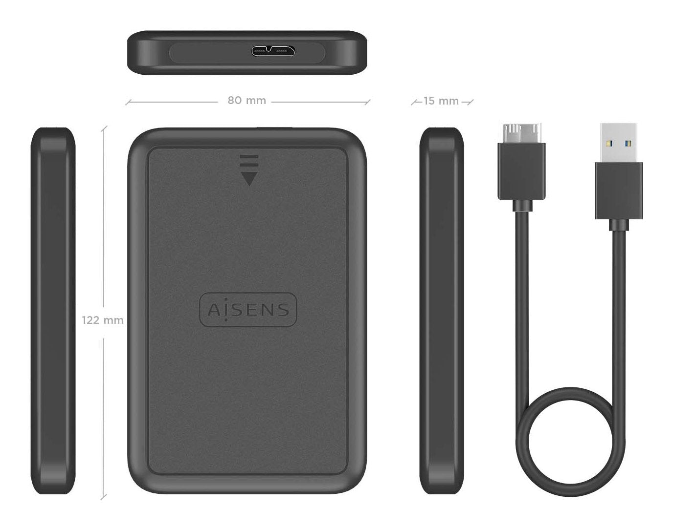 Aisens Caja Externa 2,5&Quot; Ase-2519b 9.5mm Sata A Usb 3.0/Usb3.1 Gen1, Negra