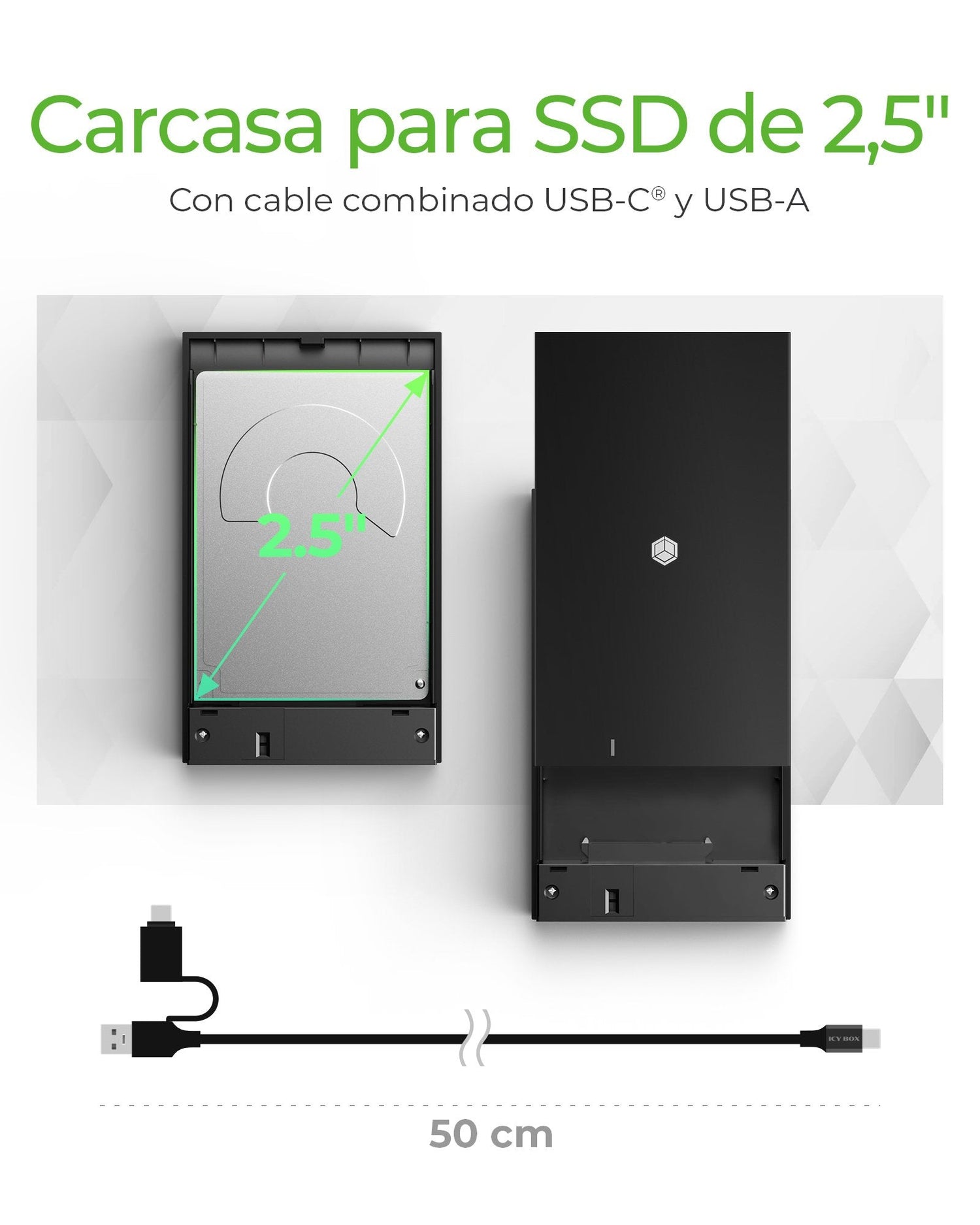- Caja externa para unidad de estado sólido (SSD) SATA, Serial ATA II, Serial ATA III 2.5"