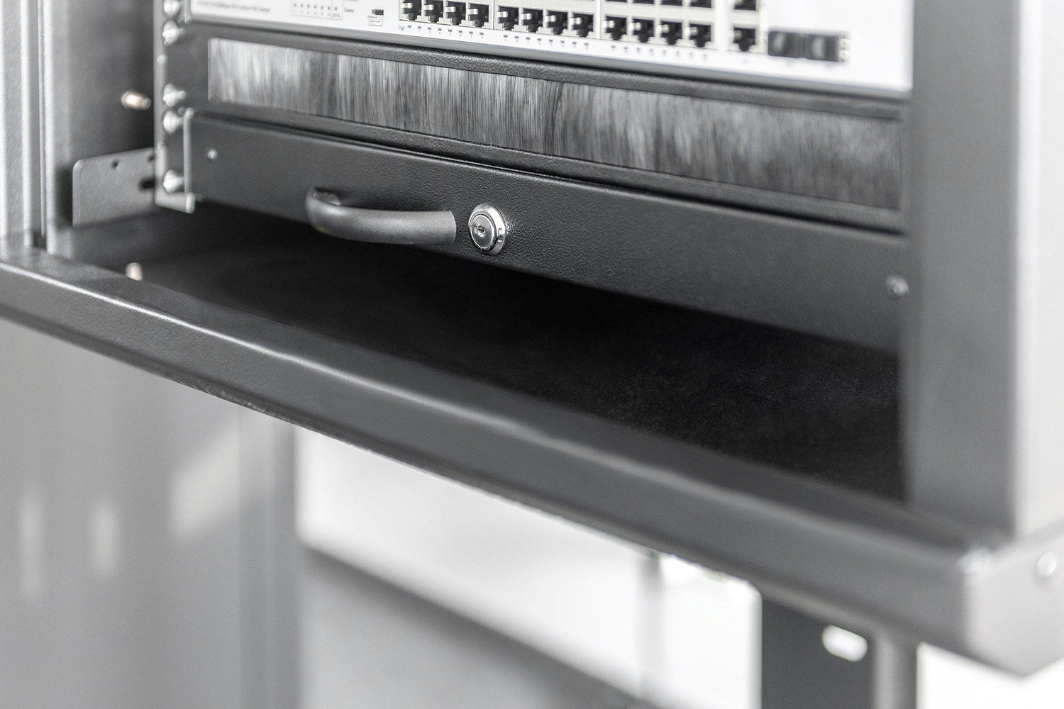 Compatible con todos los armarios DIGITUS® de 19" excepto los armarios sin montar. Para un almacenamiento seguro de teclados, documentos, etc.