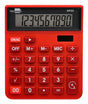 Calculadora de sobremesa de 10 dígitos. Teclas de plástico. Teclas de encendido y apagado. Tecla de raíz cuadrada. Porcentaje. Suma y resta de memoria. Medidas: 127 x 105 x 24 mm. Solar y pilas. Color rojo