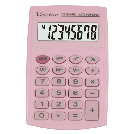 Calculadora De Bolsillo Vector Kav Vc-210 Pk, 8 Dígitos, 64 X 98,5 Mm, Rosa Claro