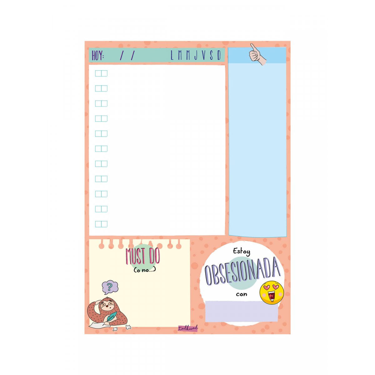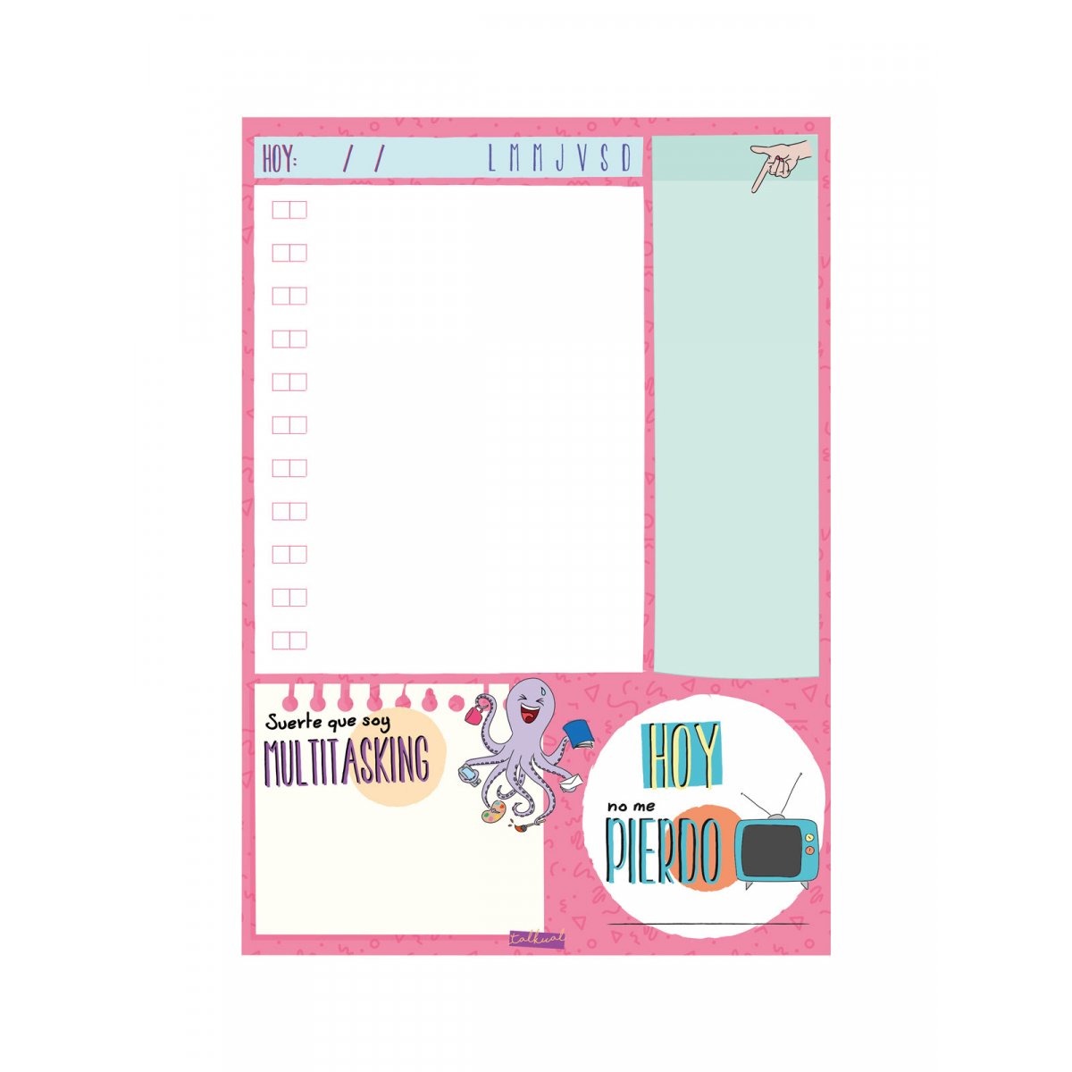 Planificador diario TALKUAL para chicas naturales, diferentes y únicas como tú que necesitan planificar sus días caóticos de estudio y/o trabajo. Encolado en la parte inferior para arrancar fácilmente. En el interior encontrarás cuatro diseños de página distintos. Papel de calidad de 90 g/m2. En este planificador tendrás espacio diario para concretar horario o indicar la prioridad de todas las tareas y compromisos del día. También dispondrás de un espacio extra para actividades que tienen varias tareas asociadas. Ya no tendrás excusa para no planificarte o, al menos, te ayudará a ser un pelín más organizada... ¡Cualquier ayuda es poca! Muéstrate #Talkual, #talkualsoy. Somos TALKUAL.