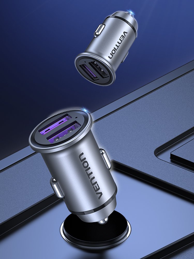 Vention Cargador de Coche FFEH0/ 2xUSB. Tipo de cargador: Auto, Alimentación: Encendedor de cigarrillos, Compatibilidad del cargador: Universal. Voltaje de entrada: 12 - 24 V, Voltaje de salida máximo: 12 V. Carga rápida. Color del producto: Gris
