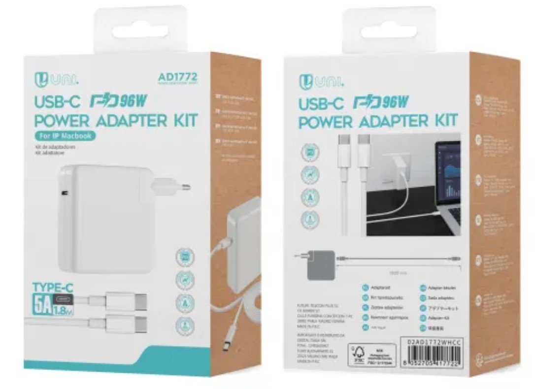 UNICO HC0308. Tipo de cargador: Interior, Alimentación: Corriente alterna, Compatibilidad del cargador: Universal. Voltaje de entrada: 100-240 V, Voltaje de salida máximo: 20,5 V, Corriente de salida de adaptador AC: 4,7 A. Número de puertos USB Tipo C: 1, Carga rápida. Longitud de cable: 1,8 m, Color del producto: Blanco