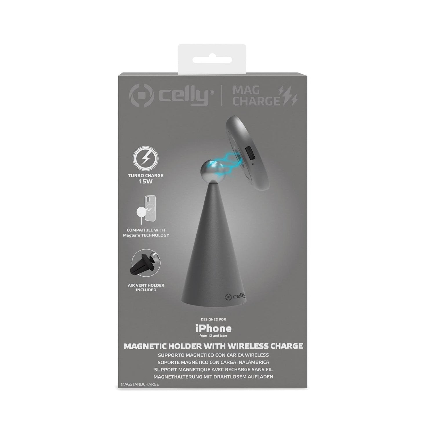 Celly MAGSTANDCHARGE. Tipo de cargador: Interior, Alimentación: USB, Compatibilidad del cargador: Smartphone, Número de puertos USB Tipo C: 1, Cargador inalámbrico. Color del producto: Plata