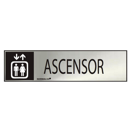 Cartel Informativo "Ascensor" (Inox Adhesivo 0.8mm) 5x20cm Normaluz