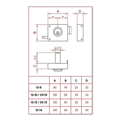 Cerradura De Sobreponer Golpe Y Llave. Izquierda Jis 12-10i Jis