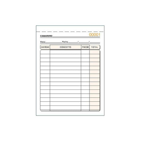 Pack De 10 Unidades Talonario Camareros Octavo Natural Sin Copia