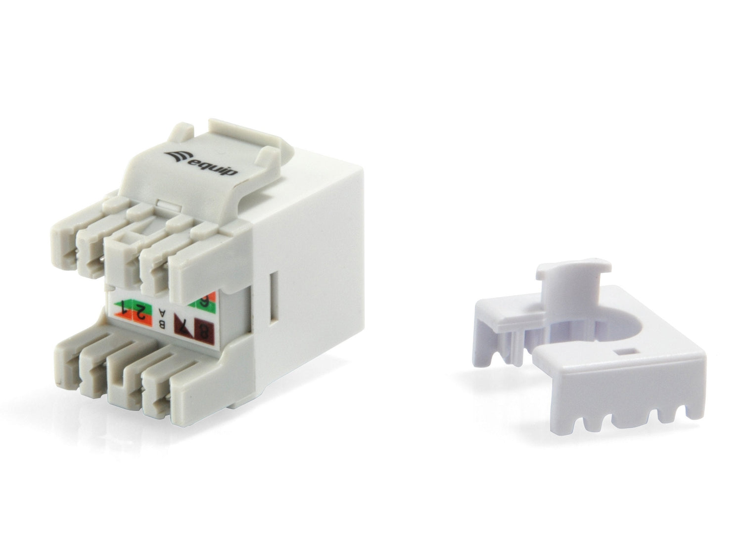Equip 769213. Tipo de construcción: Plano, Color del producto: Blanco, Conector 1: RJ-45. Ancho: 18 mm, Profundidad: 24,5 mm, Altura: 41 mm. Ancho del paquete: 203 mm, Profundidad del paquete: 35 mm, Altura del paquete: 152 mm. Cantidad por paquete: 8 pieza(s). Ancho de la caja principal: 480 mm, Longitud de la caja: 390 mm, Alto de la caja principal: 253 mm