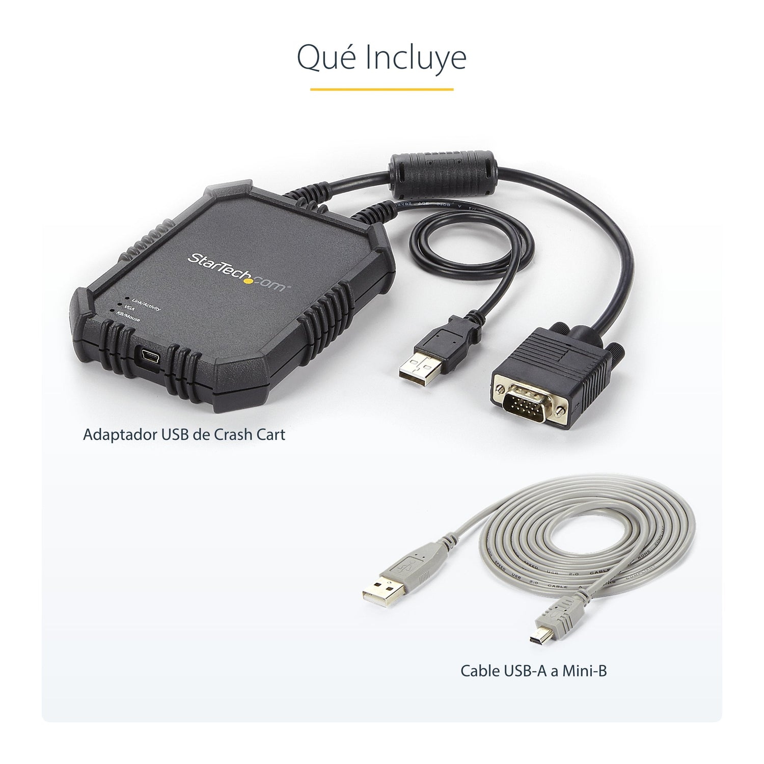 Este resistente adaptador portátil de crash cart USB le permite convertir su ordenador portátil en consola portátil para acceder a servidores, ordenadores de sobremesa y portátiles, terminales ATM, quioscos o cualquier dispositivo informático con puertos tanto VGA, como USB. Este adaptador también es compatible con la transferencia local de ficheros y la captura de vídeos integrados en el software. Máxima durabilidad Este adaptador de crash cart ha sido específicamente diseñado para máxima durabilidad. Incluye una caja resistente con revestimiento de goma que soporta caídas, ya que absorbe el impacto, a fin de garantizar que el usuario esté equipado para cualquier reto. Uso y funcionamiento sencillos Solucione los problemas de sus dispositivos de forma rápida y fácil. Basta con conectar el adaptador de crash cart a su ordenador portátil mediante el cable USB incluido y luego conectar los cables USB y VGA integrados a su servidor. El adaptador de crash cart incluye una flexible interfaz de software que ofrece un rendimiento resistente. Le permite transferir ficheros desde su ordenador portátil a un servidor, monitorear y capturar la actividad del dispositivo conectado como vídeo con fines de registro o instrucciones, hacer capturas de pantalla, y ajustar a escala la ventana mostrada en modo de pantalla completa o de tamaño inferior, sin necesidad de barras de desplazamiento. Portabilidad compacta Este compacto adaptador de crash cart permite la conexión con un dispositivo sin periférico a través de un simple ordenador portátil, sin que haya que cargar de un lado a otro un crash cart de sala de servidores convencional. Con óptima portabilidad ideada para su administración o reparación móvil, este adaptador tiene un diseño de tamaño bolsillo que ocupa poco espacio y es de peso ligero, por lo cual se puede llevar fácilmente dentro de la bolsa de su ordenador portátil. El adaptador tiene alimentación por USB y, por tanto, no es necesario llevar un adaptador de alimentación. Además, los cables KVM están conectados al adaptador de crash cart para que no se requieran accesorios adicionales para conectarlo a su servidor. Los cables integrados están diseñados para que reduzcan la tensión, lo cual evita que se rompan o se desgasten. Conectividad universal Dado que no se requiere instalación de software en el lado del servidor, el adaptador de crash cart USB ofrece control a nivel de BIOS de cualquier ordenador o dispositivo que tenga un puerto tanto VGA, como USB.