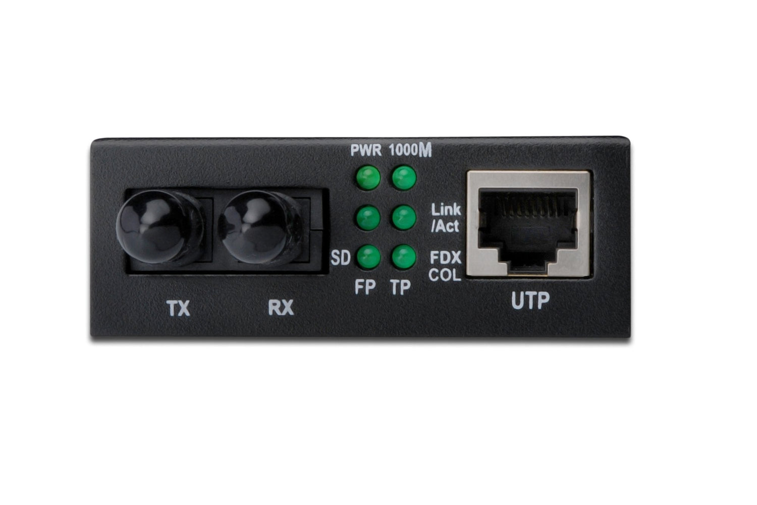 - Conectores: 1x RJ45, 1x ST Duplex