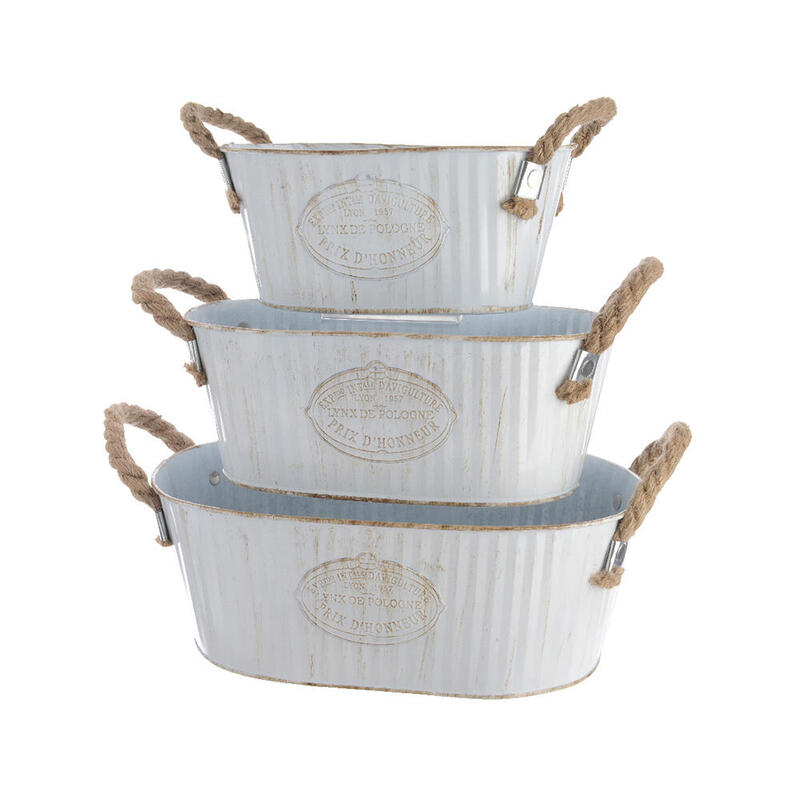 Cubo Zinc Ovalado Con Asa De Cuerda Set De 3unid