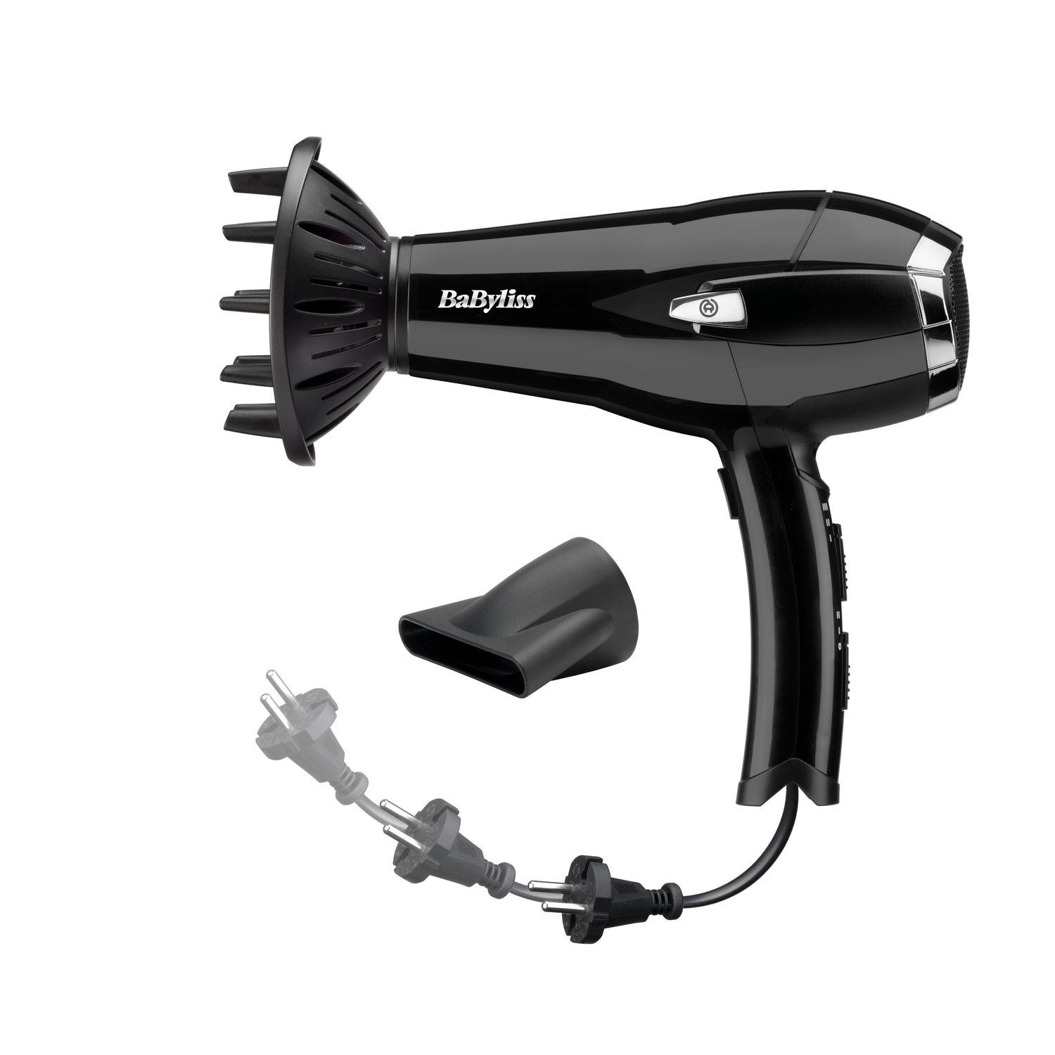 BaByliss D374DE. Tecnología de revestimiento de rejilla: Cerámico, Tipo de motor: CC. Color del producto: Negro, Material de la carcasa: Plástico, Longitud del cable: 1,95 m. Potencia: 2000 W, Frecuencia de entrada AC: 50/60 Hz. Ancho: 280 mm, Profundidad: 100 mm, Altura: 275 mm. Cantidad por paquete: 1 pieza(s), Ancho del paquete: 233 mm, Profundidad del paquete: 102 mm