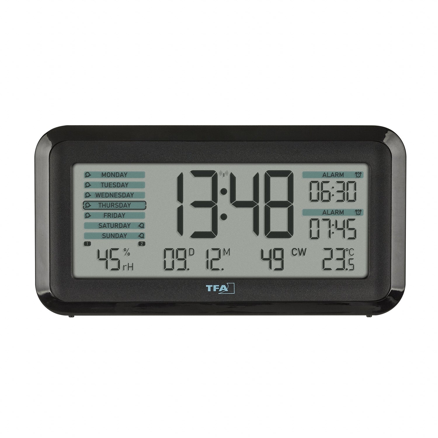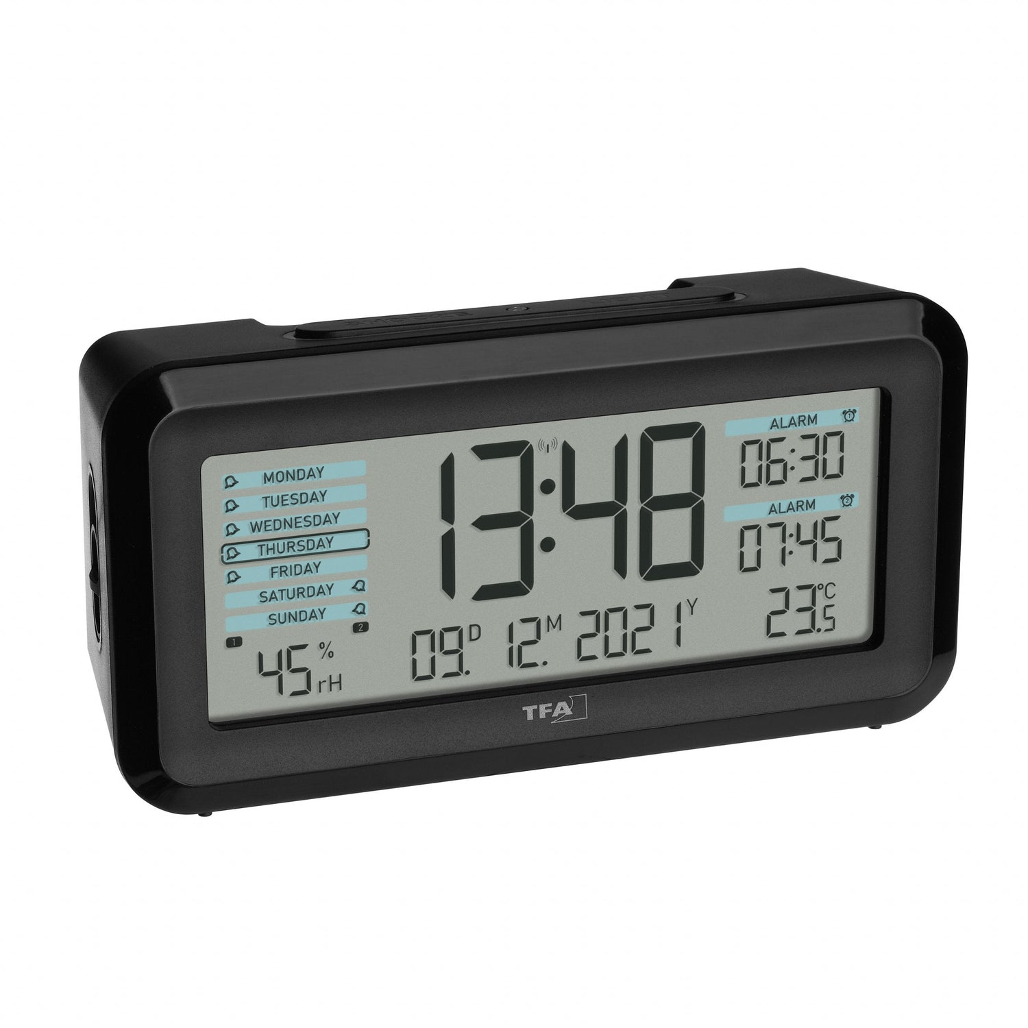 TFA-Dostmann Boxx2, Reloj despertador digital, Rectángulo, Negro, 12/24h, 0 - 50 °C, Cualquier género