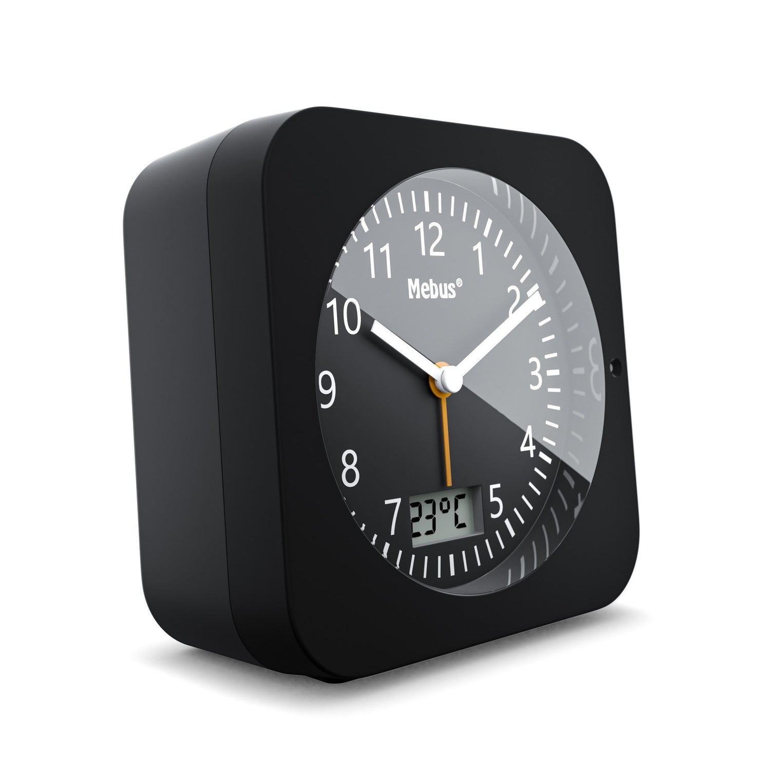 Mebus 25609. Tipo: Reloj despertador digital, Forma: Plaza, Color del producto: Negro. Tipo de visualizador: Analógica. Fuente de energía: Batería, Tipo de batería: AA, Voltaje de la pila: 1,5 V. Ancho: 94 mm, Altura: 94 mm, Profundidad: 30 mm. Cantidad por paquete: 1 pieza(s)