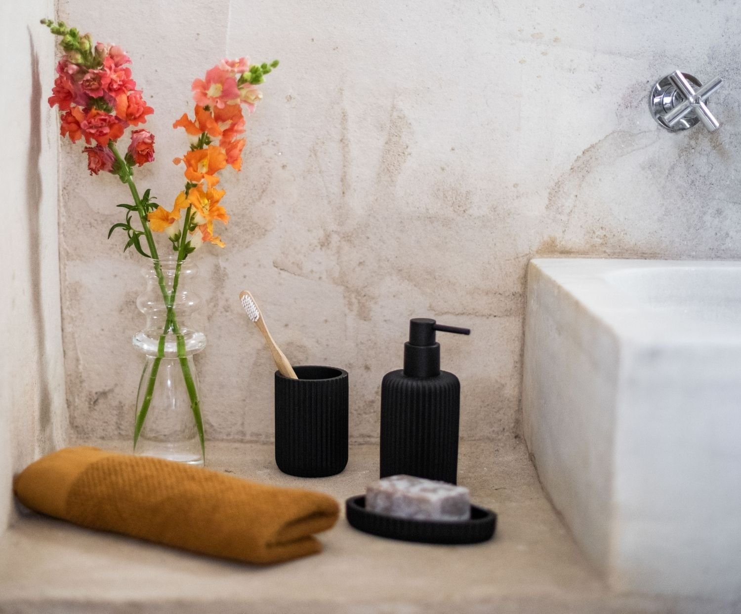 Dispensador Resina Negro Mate Ø7x16cm Andrea House