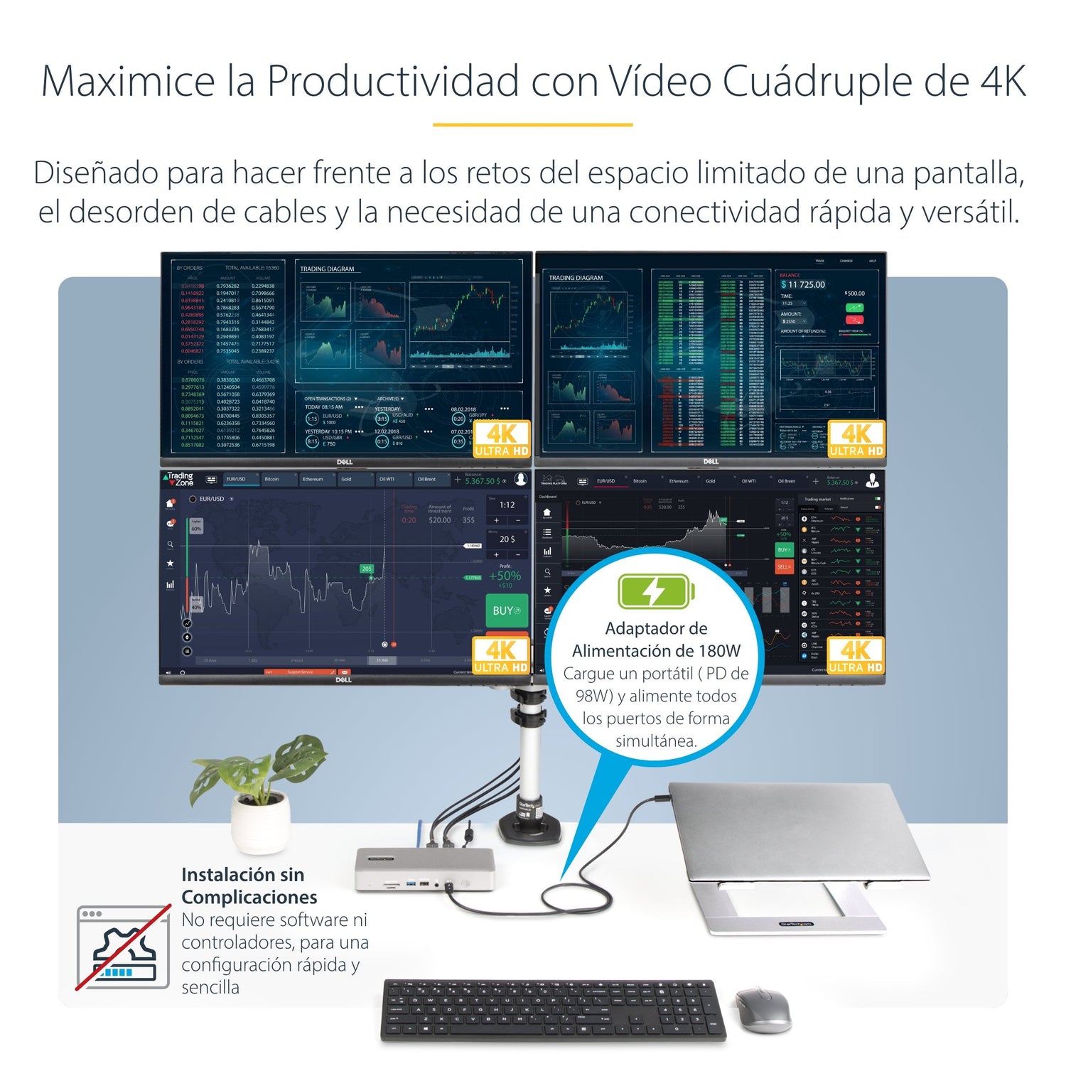 - COMPATIBILIDAD: Windows, macOS y Ubuntu - Para todo portátil Thunderbolt 4/3 y USB4 - Pantalla cuádruple en portátiles Windows - Pantalla doble en MacBook Pro (Apple M1/M2/M3 Max y Pro) - Una pantalla en MacBook Air
