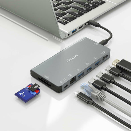 Aisens Usb-C Dock 6 En 1, Usb-C A 1xhdmi, 3xusb-A, 1xsd, 1xmicro Sd, Gris, 15cm