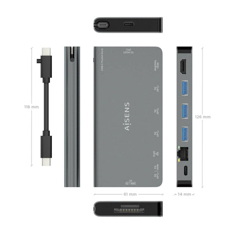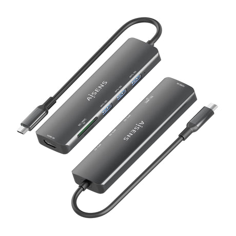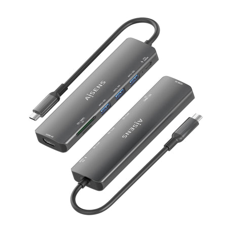 Aisens Usb-C Dock 7 En 1, Usb-C A 1xhdmi, 3xusb-A, 1xusb-C Pd 100w, 1xsd, 1xmicro Sd, Gris, 15cm