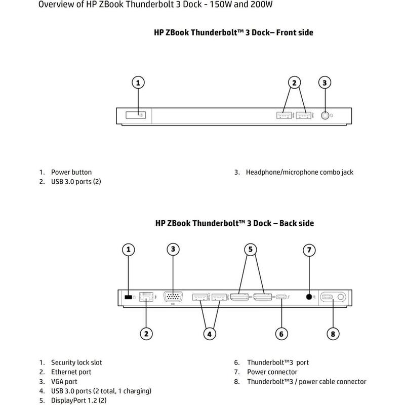 Docking Station Reacondicionado Hp Elite / Zbook Thunderbolt 3 Dock Usb-C 10 Puertos Con Cargador 200w 841830-002 Hstnn-Cx01 1 Año De Garantia