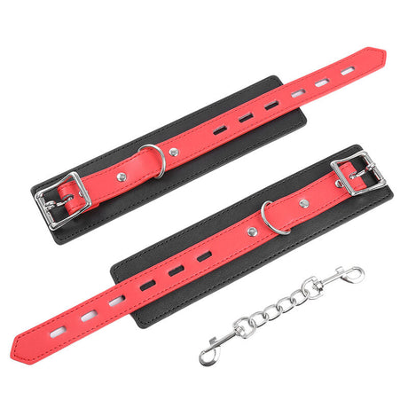 Kink - Muñequeras Forradas Con Agujeros Cuadrados Rojo Y Correa Negro Ajustable 17-29 Cm X 6 Cm