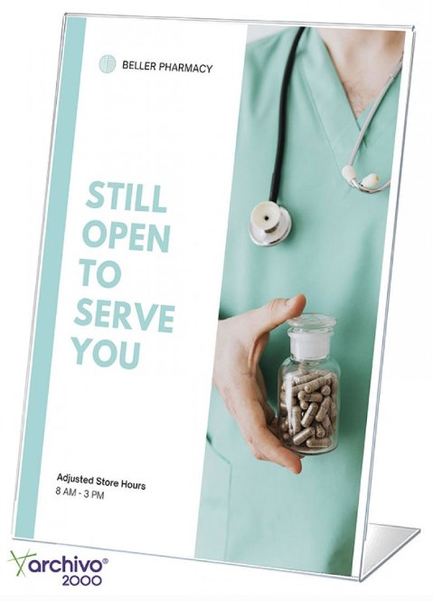 Expositor sobremesa en forma de L Archivo 2000 A7 vertical. Fabricado en poliestireno ultra transparente de gran calidad y resistencia. Visibilidad por una cara. El documento se desliza lateralmente. Amplia base que lo hace muy estable