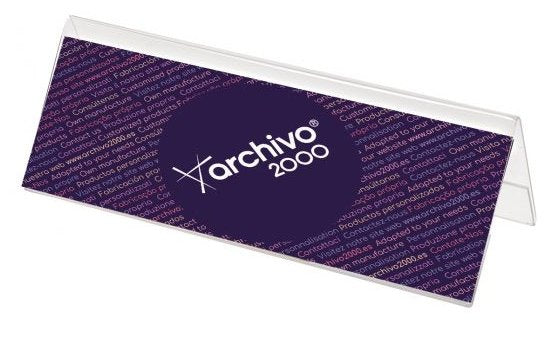 Portanombres sobremesa de Archivo 2000. Fabricado en poliestireno ultra transparente de máxima calidad y resistencia. Formato A4. Visibilidad por ambas caras. Firme base de apoyo que garantiza su total estabilidad.