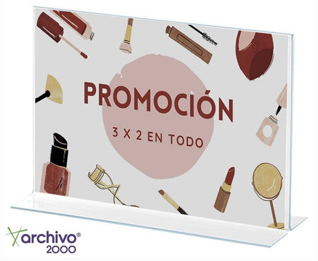 Archivo 2000 Expositor Sobremesa En Forma De T Din A4 Horizontal 85x300x215 Mm Cristal Transparente
