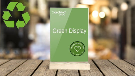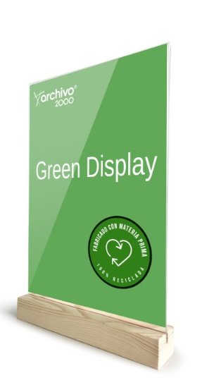 Archivo 2000 Expositor De Sobremesa Sostenible Doble Cara A6 Vertical Metacrilato Con Base De Madera