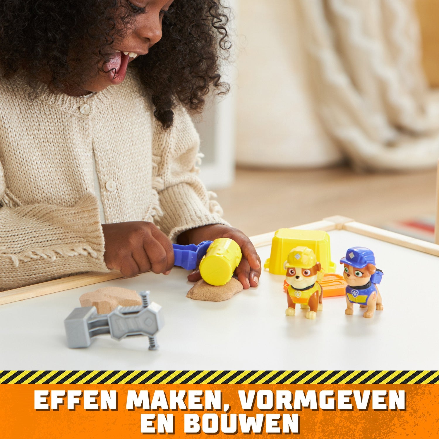 INCLUYE: 1 figura de Rubble, 1 figura de Mix, 2 herramientas, 85 gr de arena Kinetic Sand, 1 contenedor con cierre hermético
