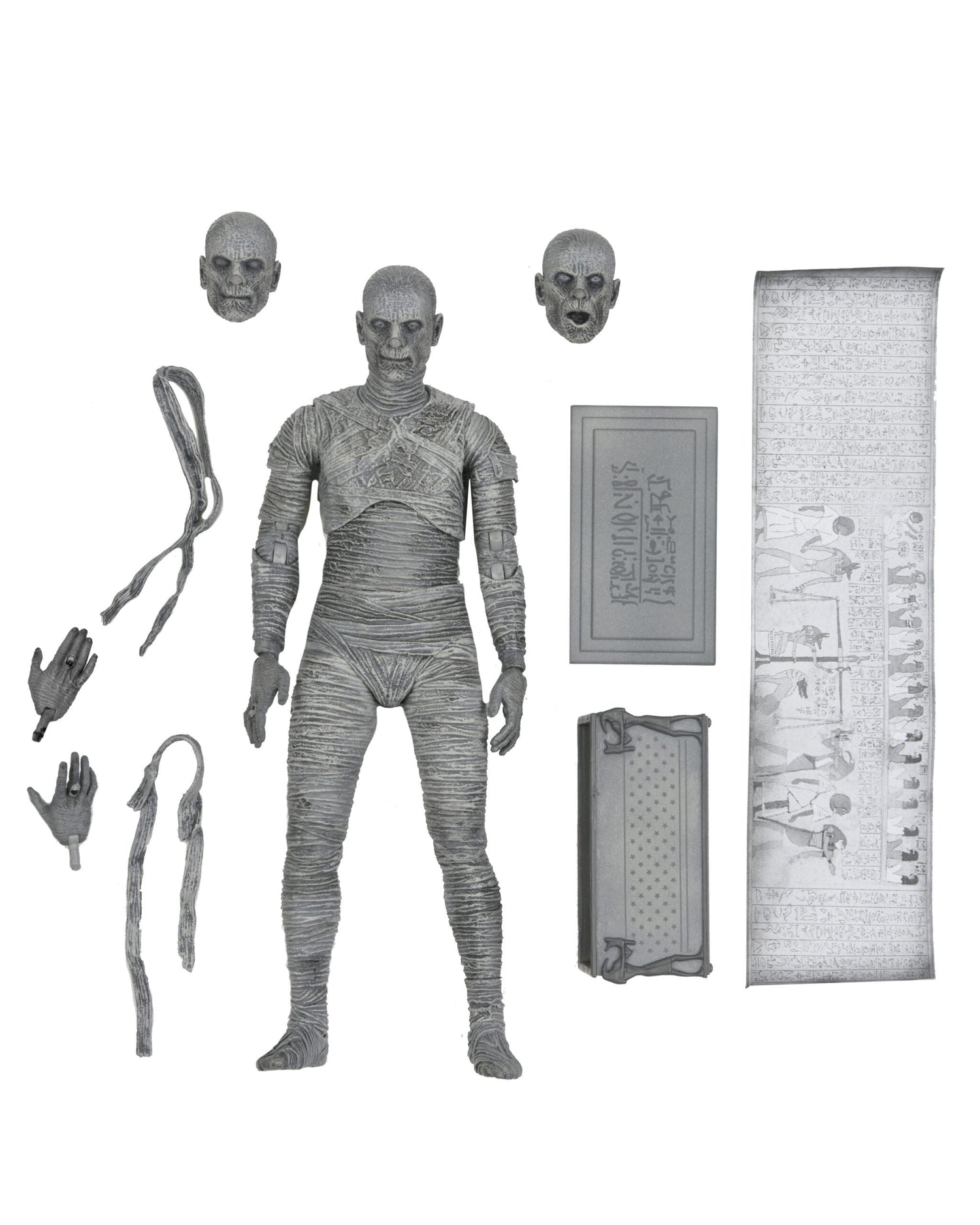 NECA Ultimate Mummy (Black & White). Tipo de producto: Figura de acción coleccionable, En base a: Series de TV y cine, Tema: The Mummy. Altura: 177,8 mm. Cantidad por paquete: 1 pieza(s)