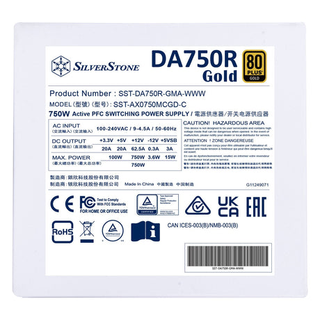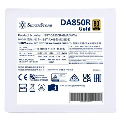 Fuente Alimentacíon Silverstone 850w 80 Plus Gold, Modular, Atx 3.0 Sm-Da850r-Gma-Www