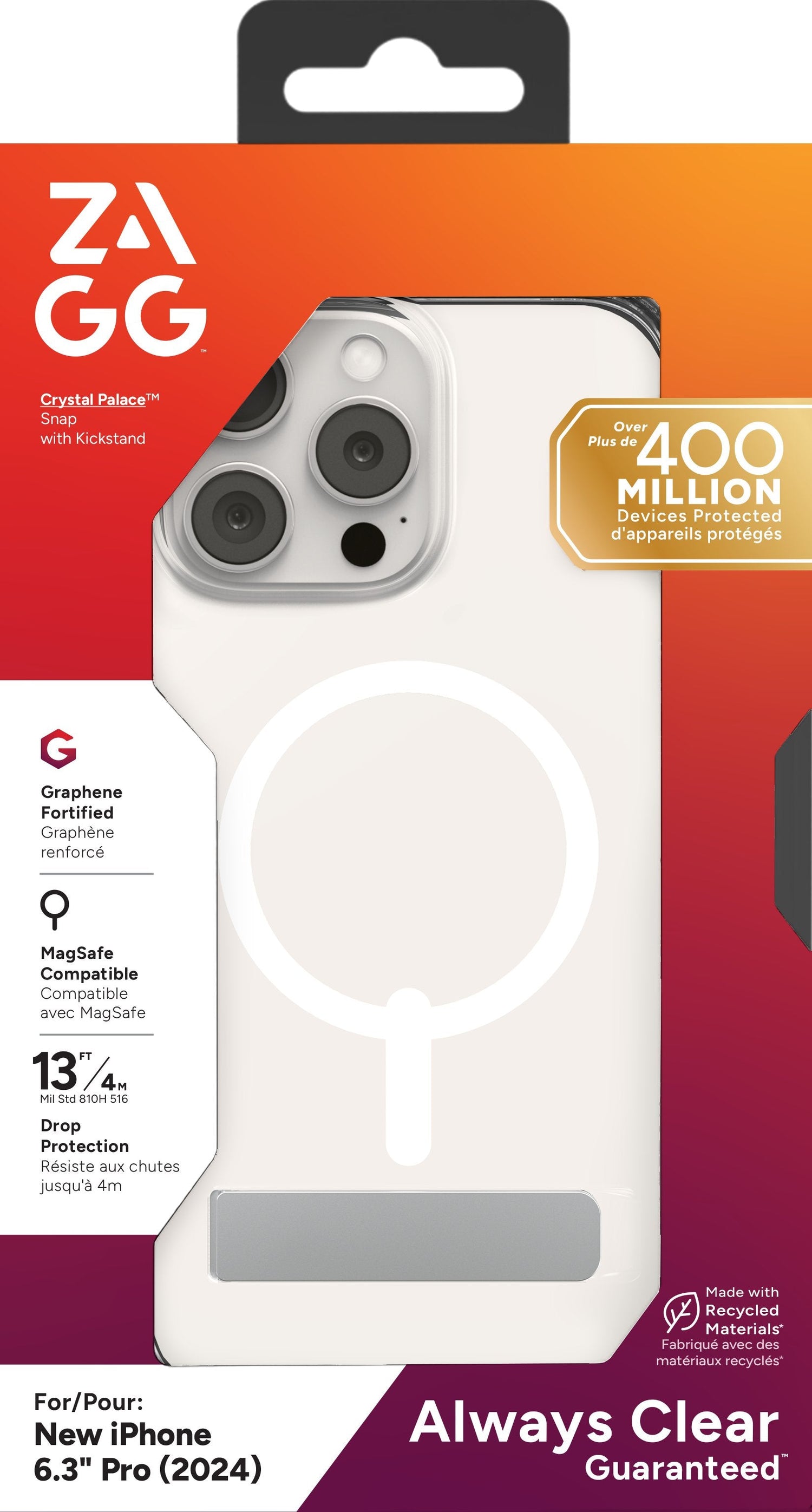 ZAGG Crystal Palace Snap w/Kickstand, Funda, Apple, iPhone 16 Pro, 16 cm (6.3"), Transparente
