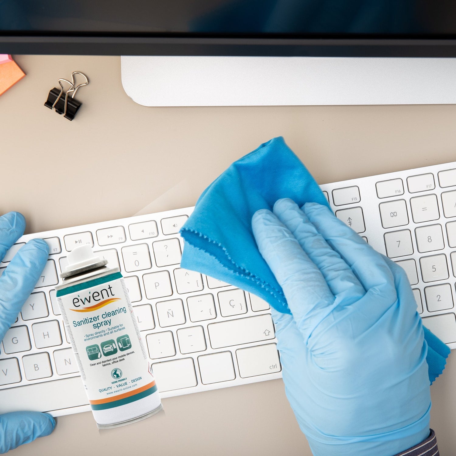 Limpia y desinfecta todo tipo de superficies: desde su dispositivo móvil (teléfono inteligente / tableta), telas (incluidas máscaras quirúrgicas), escritorio de oficina, sillas, mesas, herramientas de trabajo, partes del interior del automóvil, computadoras personales y teclados.