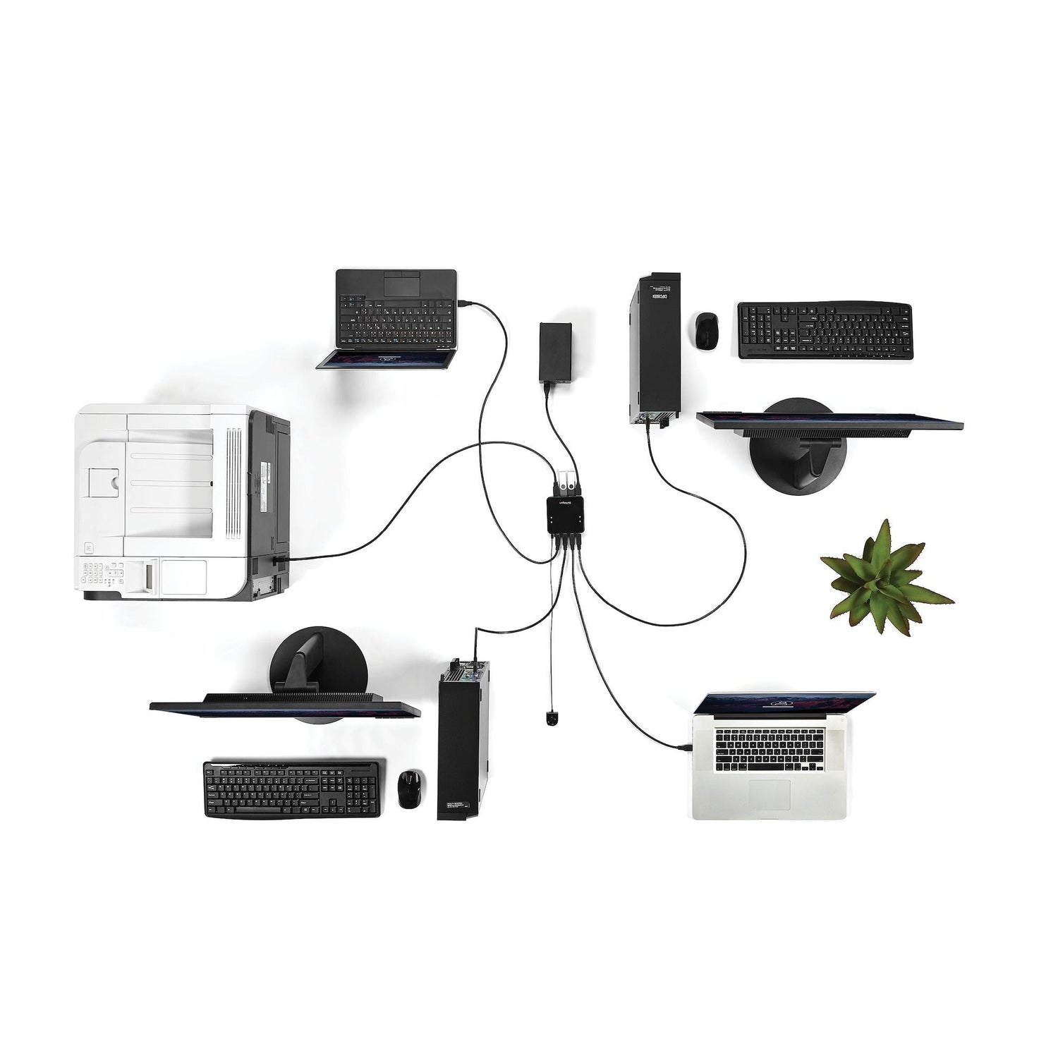Evite los gastos de adquirir periféricos duplicados mediante el uso compartido de dispositivos (como impresoras, unidades portátiles de disco duro, ratón y teclado USB), con hasta cuatro ordenadores. Este conmutador USB también evita tener que cambiar de cable entre un sistema y otro, lo cual le ahorra tiempo y esfuerzo.